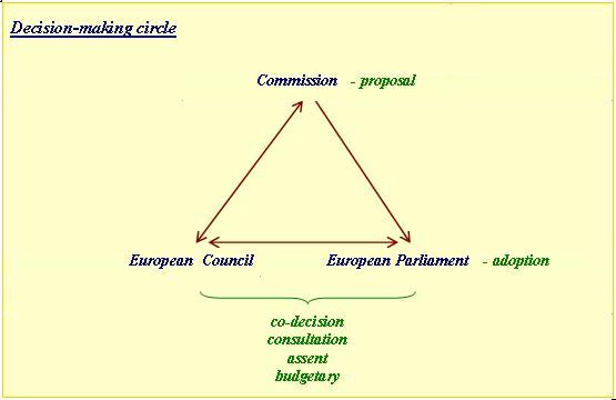 In general, it is the European Commission that proposes new legislation, but it is the Council and Parliament that pass the laws. Other institutions and bodies also have roles to play according to the decision-making procedures. It should be noted that at the time of the Treaties of Rome it was the Council to adopted secondary legal norms. Through decades and hard efforts the Parliament could attain more rights in the direct participation of the decision-making. This led to an essential change in the role of the Parliament and currently in the frame of the most usual decision-making procedure the co-decision procedure - it is the co-legislator besides the Council. The stronger co-legislator role of the European Parliament is a significant step in the discussions of the democratic deficit of the European Union. The democratic deficit is a concept invoked principally in the argument that the European Union and its various bodies suffer from a lack of democracy and seem inaccessible to the ordinary citizen because their method of operating is so complex. The Maastricht, Amsterdam and Nice Treaties have triggered the inclusion of the principle of democratic legitimacy within the institutional system by reinforcing the powers of Parliament with regard to the appointment and control of the Commission and successively extending the scope of the co-decision procedure.